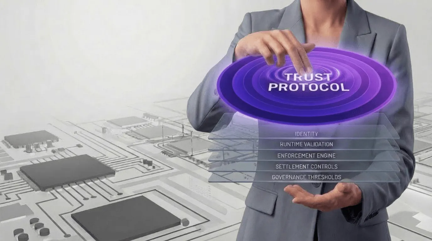 Authority conditions resolve before execution. Identity, credential, trust, policy, enforcement, and settlement states must align before any system transition proceeds. There is no post-execution reconciliation path.